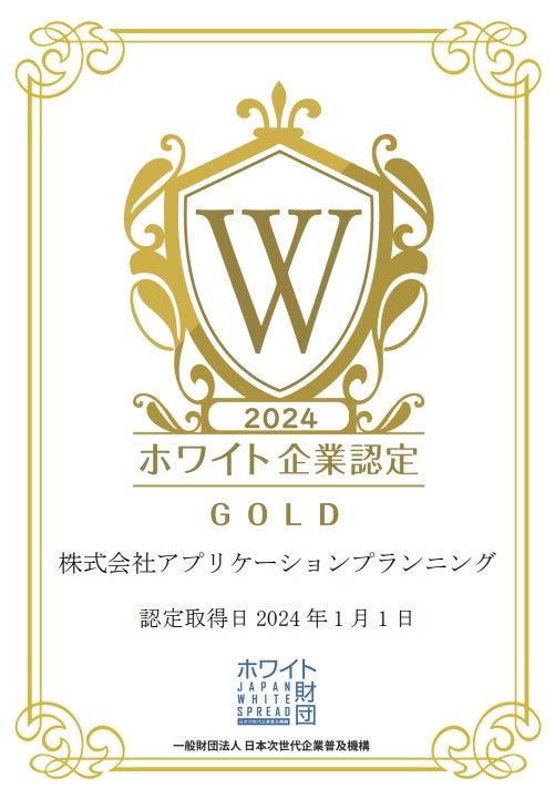 株式会社アプリケーションプランニングは2024年1月1日に「ホワイト企業認定 ゴールドランク」を取得されました!