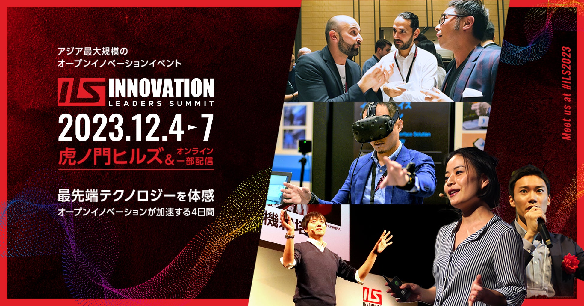 前回、16,000人が参加したアジア最大のオープンイノベーションの祭典「イノベーションリーダーズサミット2023(略称:ILS2023) 運営:株式会社プロジェクトニッポン 後援:経済産業省」は、12月4日(月)-12月7日(木)に虎ノ門ヒルズ(東京)にて開催いたします。