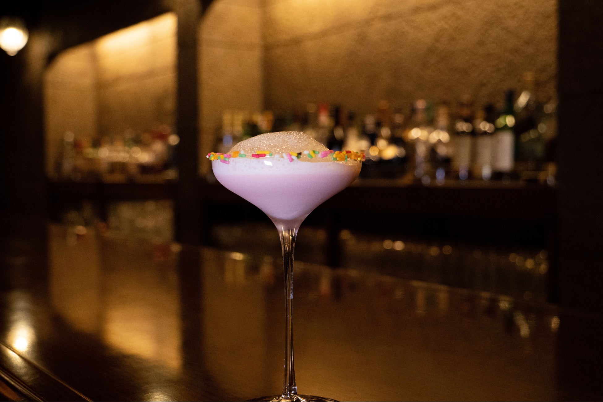 出現画廊とのコラボ企画として、NAKAKI PANTZが描き下ろしたキービジュアルのイメージで作ったオリジナルカクテル「出現」をお楽しみいただけます。カラフルでポップな、ストロベリーの香りが広がるオリジナルカクテルをお楽しみください。