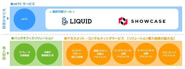なお、本ソリューションは、株式会社Liquid(本社:東京都千代田区、代表取締役:長谷川敬起)の「LIQUID eKYC」および株式会社ショーケース(本社:東京都港区、代表取締役社長:永田豊志)のカンタンeKYC「ProTech ID Checker」と、KDDIエボルバのバックオフィスセンターの業務設計・運用をハイブリッドに提供するものです。