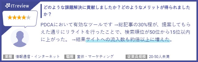 【ITreviewにおける「SEARCH WRITE」のアワード受賞実績】