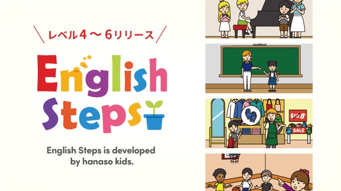 【楽しく続けられる子ども専門オンライン英会話】hanaso kids、英語を「楽しく」「効果的に」学べる、関正生先生監修のオリジナルの無料教材「English Steps」レベル4~6をリリース!