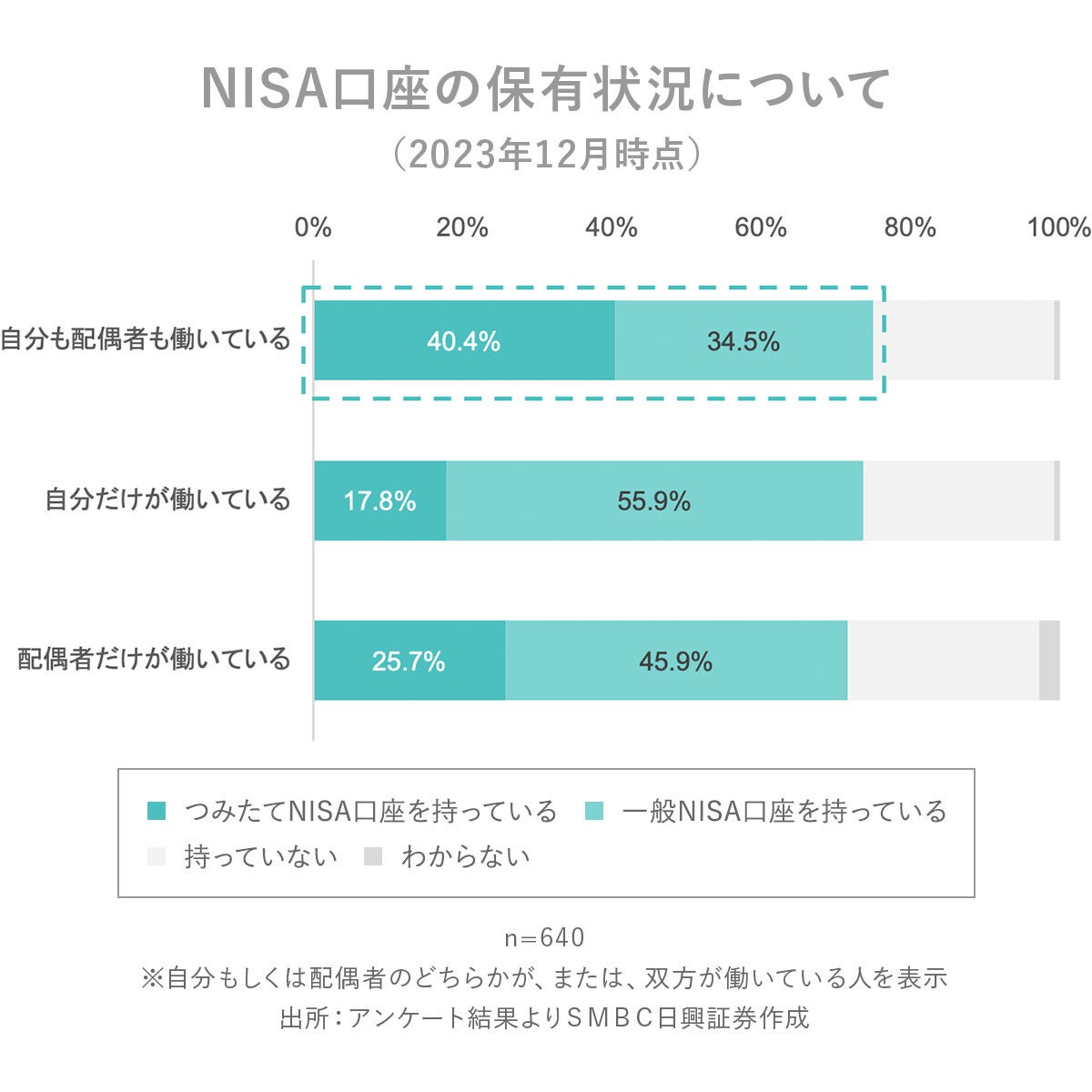 ・片働き世帯が「一般NISA口座」を保有している方が多かったのに対して、共働き夫婦世帯では「つみたてNISA口座」を保有している方が多かった。