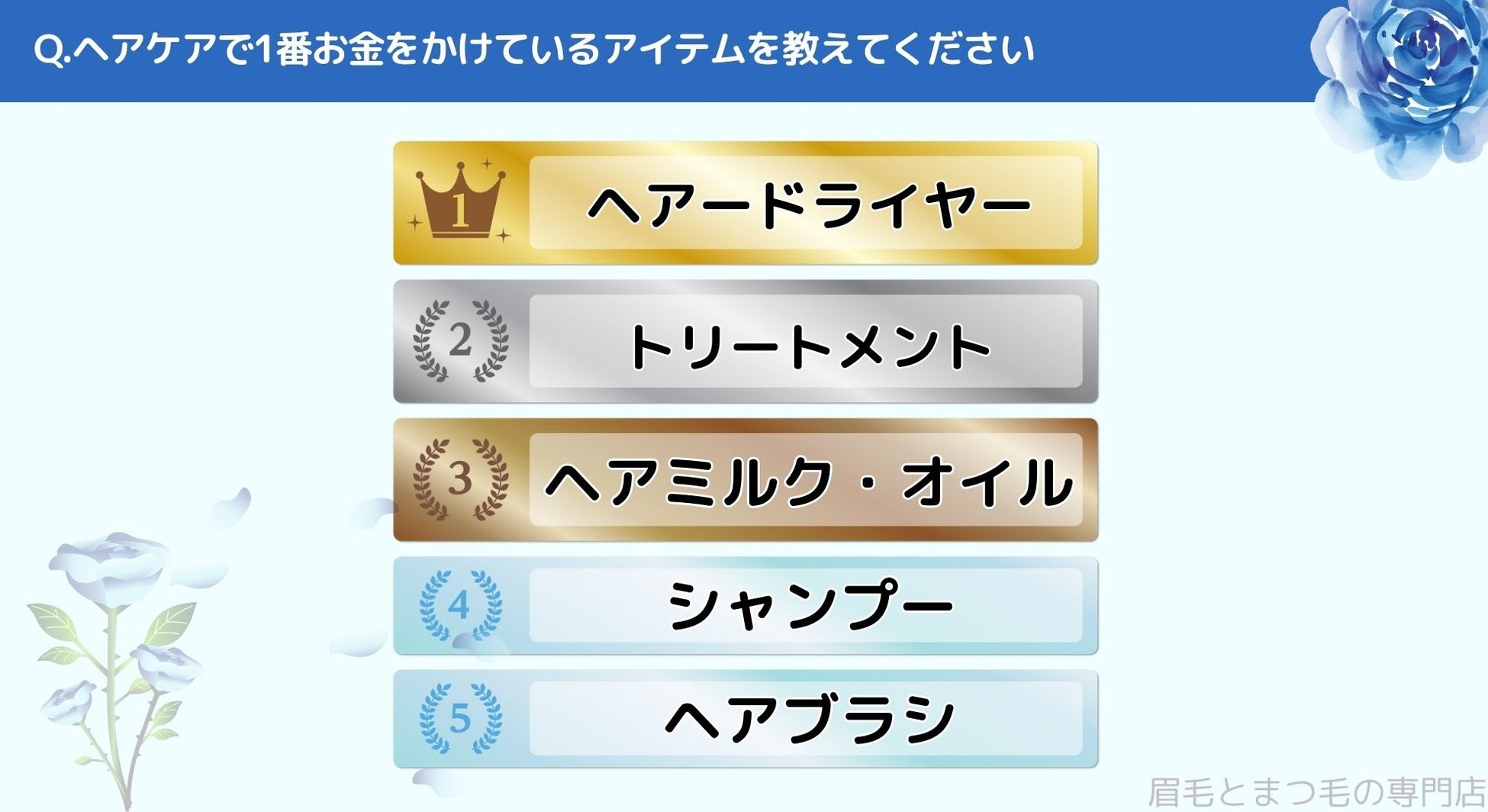松山市で眉毛サロンを探している方必見!|ヘアケアで1番お金をかけているアイテムは?松山市エリアの人にアンケート