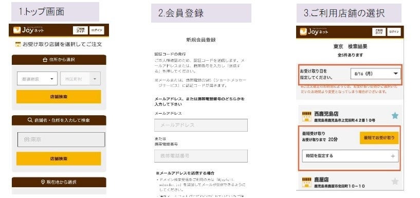 ジョイフルのテイクアウトWeb予約サービスは、スマートフォンやPCからご利用店舗を