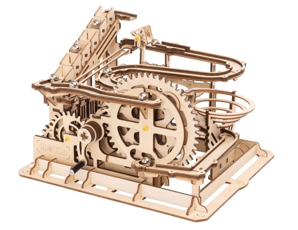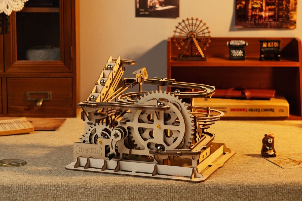 コースターシリーズは、ピース数の少ない簡単なウッドパズルでは物足りないという方におすすめです。ギアがうまくかみ合うよう、ワックスを多めに塗ったり、やすり掛けを調整したりするなど一手間を加えることで、スムーズに動くようになります。工夫が必要な分、完成してギアがうまくかみ合って動き出した時の達成感は抜群です。