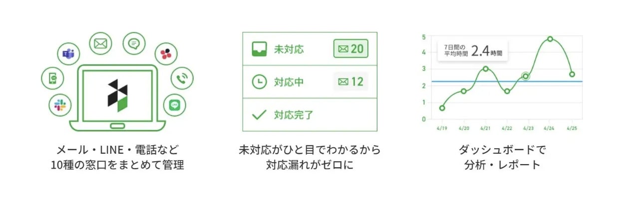 問い合わせ対応の漏れをゼロにする『Re:lation』と連携することによって、メールや電話SMSなど複数の問い合わせ窓口を一元管理し、チームで共有することができるようになります。二重返信や対応漏れ防止など、複数人での問い合わせ対応で生じがちな課題が解決できます。