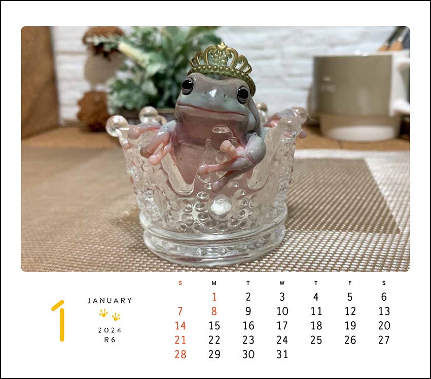 いつもカエルたちを応援してくださり、ありがとうございます。可愛いカエルたちの写真がたっぷりのカレンダーで、皆さんの1年が楽しくなりますように。