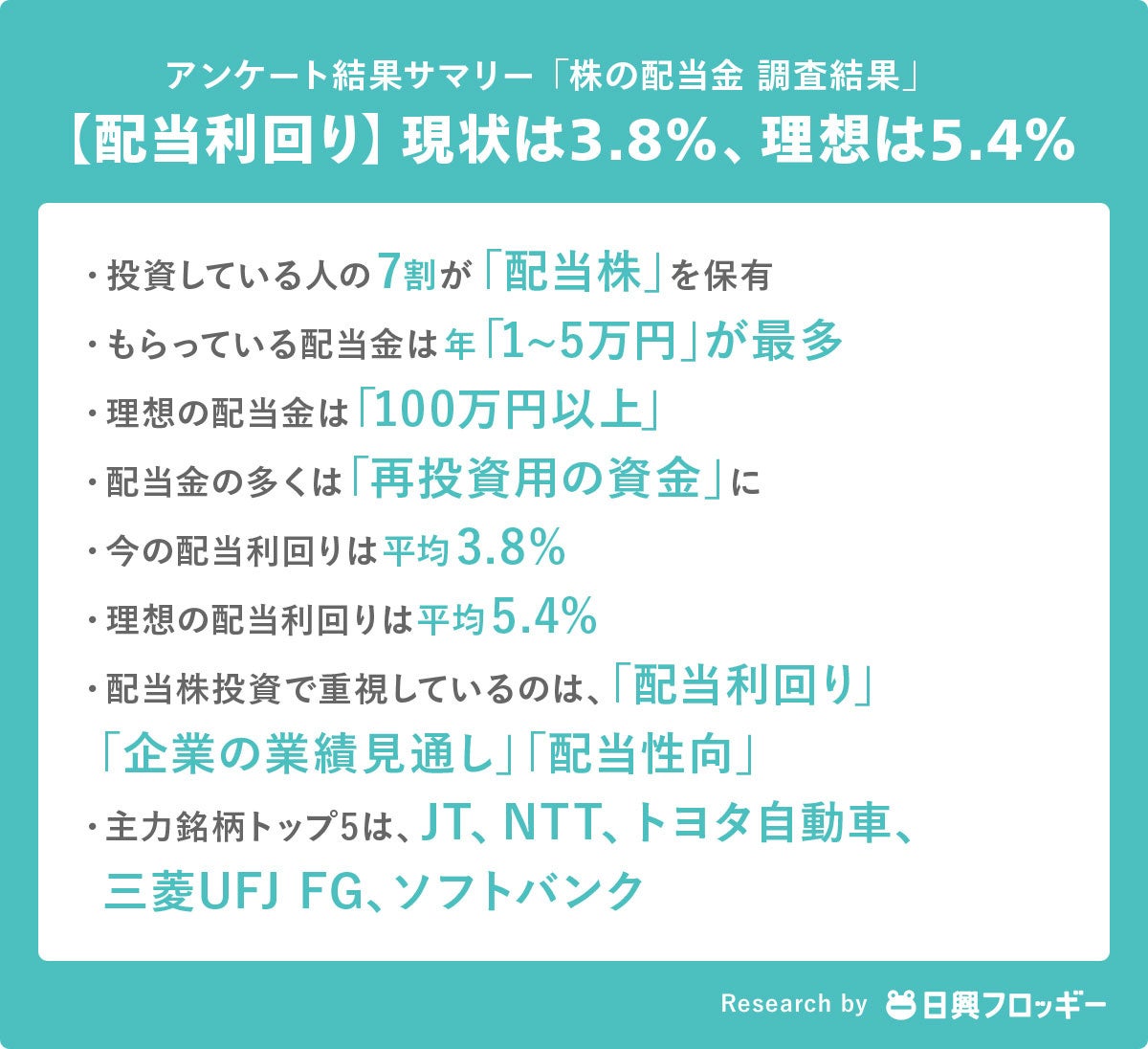 株の配当金に関する調査(2024年6月) 日興フロッギー白書 「株の配当金、いくらほしい?」