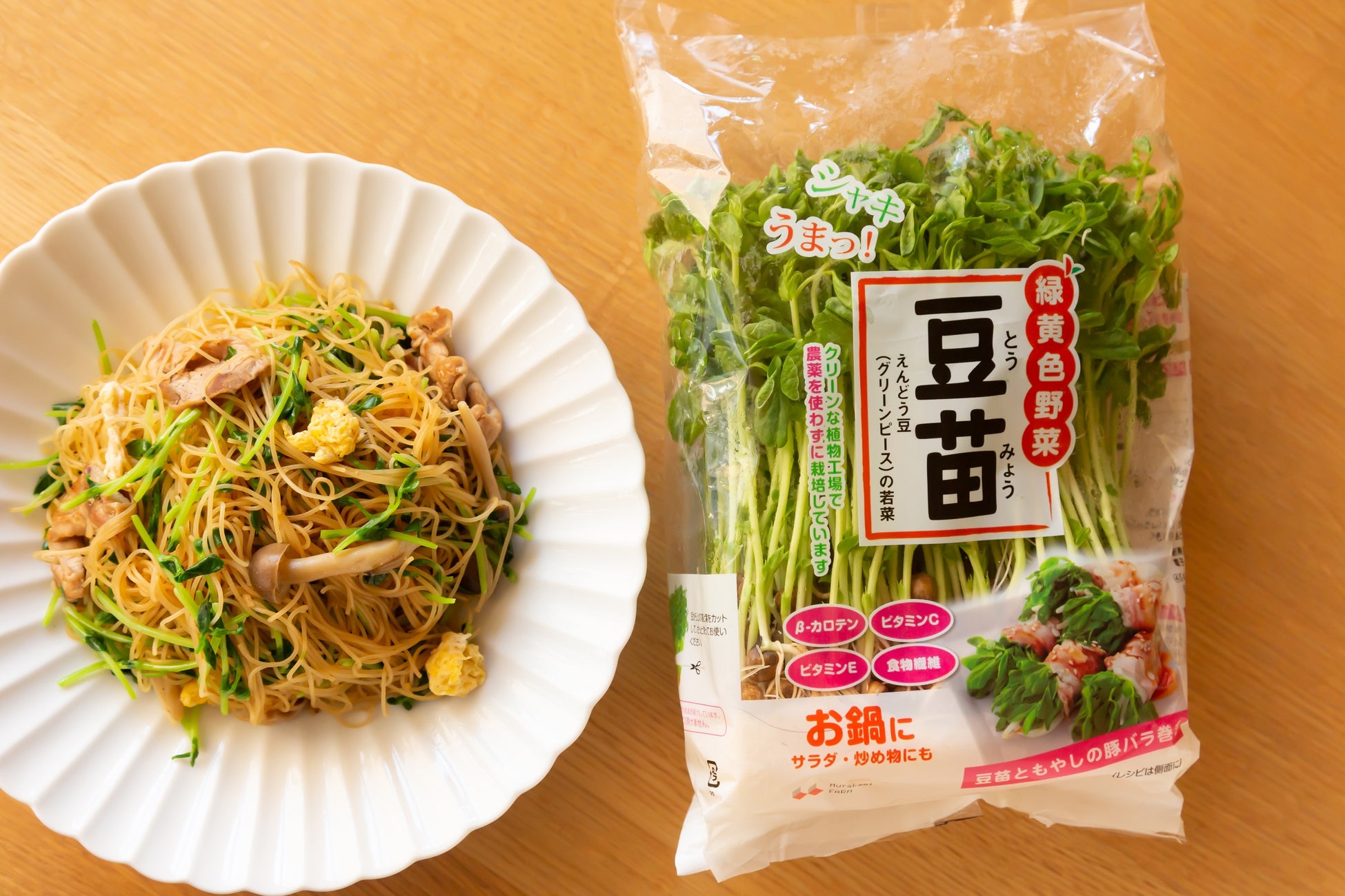 ビーフン国内シェアNo.1※「ケンミン食品」×豆苗国内生産大手「村上農園」コラボ企画 野菜摂取不足解消に新提案 焼ビーフンでおいしく豆苗を食べよう!