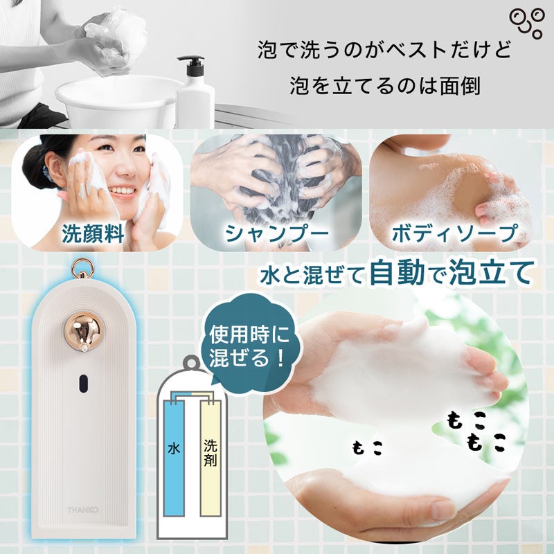 ■水と洗顔料を自動で混ぜ合わせてクリーミーな泡を作れるディスペンサー