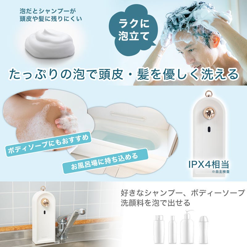 洗顔料を泡立てネットで泡立てるのが大変。泡立てネットを毎回洗うのが面倒。しっかりと泡立てて顔や髪を洗いたい、そんな方におすすめの「できたて泡オートフォーマー」です。
