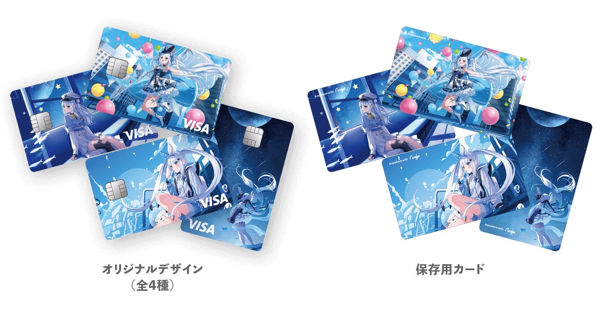 「神楽めあ」クラブのオリジナルデザインカードは、全4種類をご用意しています。ユーザーは、Nudgeアプリから数クリックで異なるデザインのカードを発行可能です。同じカード番号で複数枚発行できるため、コレクション性があり、サブスクリプションサービス等に登録している決済情報を変更する手間もかかりません。