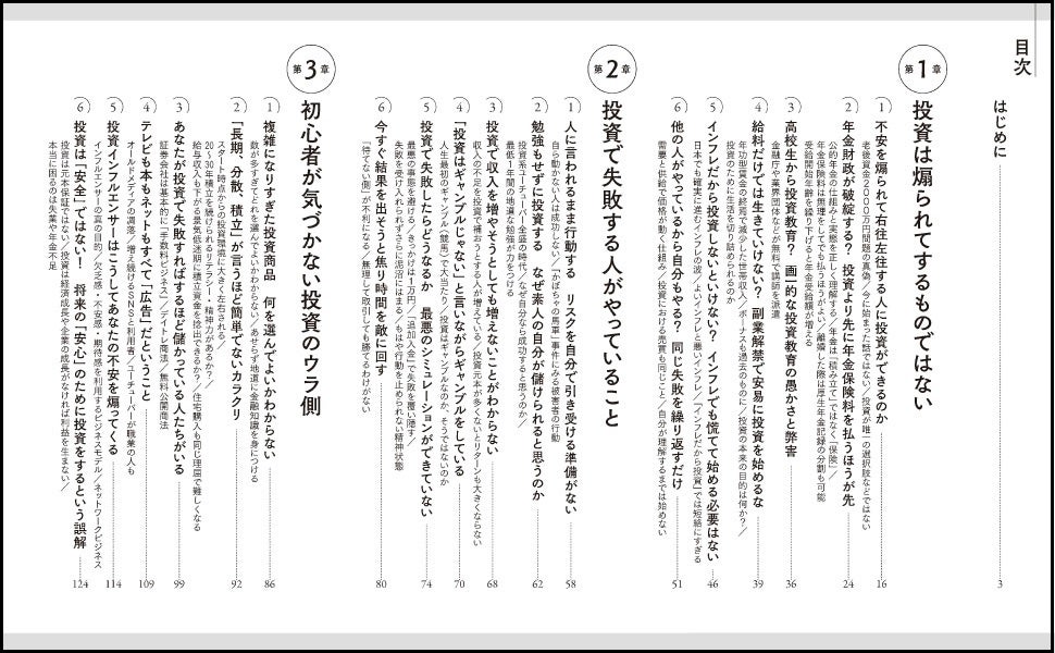 本書では、自分の目的をかなえる術が本当に投資しかないのか、そこから点検します。資産や収入を増やすには別の方法もあります。本気で成功したいなら、「一生モノの投資の本質」を勉強してからでも遅くはなく、むしろ成功への早道といえます。