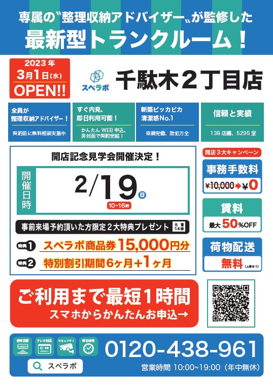 【千駄木2丁目店/3月1日(水)オープン】見学から契約、解約まで完全非接触・非対面、お申し込みからご利用まで最短1時間!都内、大阪などにて絶賛運営中のトランクルーム【スペラボ】が千駄木駅近くに出店!