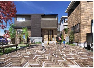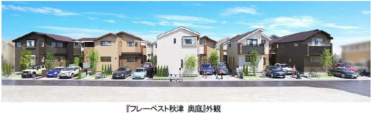 「フレーベスト秋津 奥庭」のモデルハウスです。この分譲地は、一体開発ならではのスケールメリットを活かして本来であれば家の裏側となる空間を広場や共用路地とし、「広場」「木立」「テラス」の3 つのゾーンからなる“奥庭”を創出しました。それぞれのコンセプトに応じて植栽や舗装材を使い分け、ひとつの街で3 つの異なる景色が楽しめます。また、入居後には植栽お手入れのワークショップを開催予定。室内には、段差や続き間による広さを活かした+α の空間づくりに国産素材を組み合わせ、居心地の良い空間を実現しました。