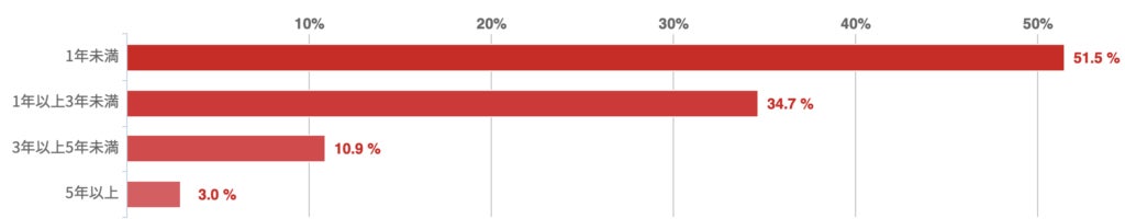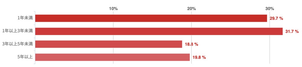 アンケートによれば、「1年以上3年未満」と答えた回答者が31.7%で最も多く、次いで「1年未満」が29.7%であった。