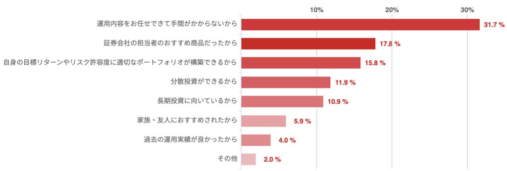 アンケートによれば、「運用内容をお任せできて手間がかからないから(31.7%)」が最も多かった。