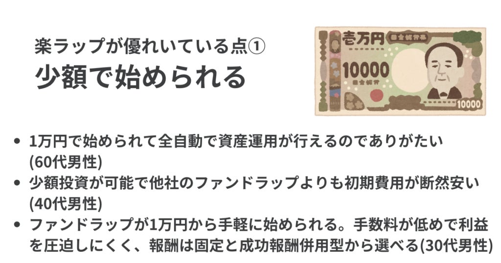 具体的には、「1万円で始められるので他社よりも敷居が低い」などの意見が見られた。