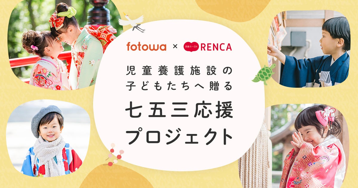 家族・子ども向け出張撮影プラットフォーム「fotowa(フォトワ)」(運営:ピクスタ株式会社 東京都渋谷区 代表取締役社長・古俣大介)は、9月30日より、全国の児童養護施設を対象に、fotowaの出張撮影と「RENCA」(運営:株式会社RENCA 京都府綾部市 代表取締役・永本 司)の衣装を無償で提供する「七五三応援プロジェクト2022」を実施いたします。