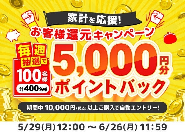 【家計を応援!!】家電EC「XPRICE本店」にて抽選で400名様に5,000ポイントが当たる「お客様還元ポイントバックキャンペーン」開催