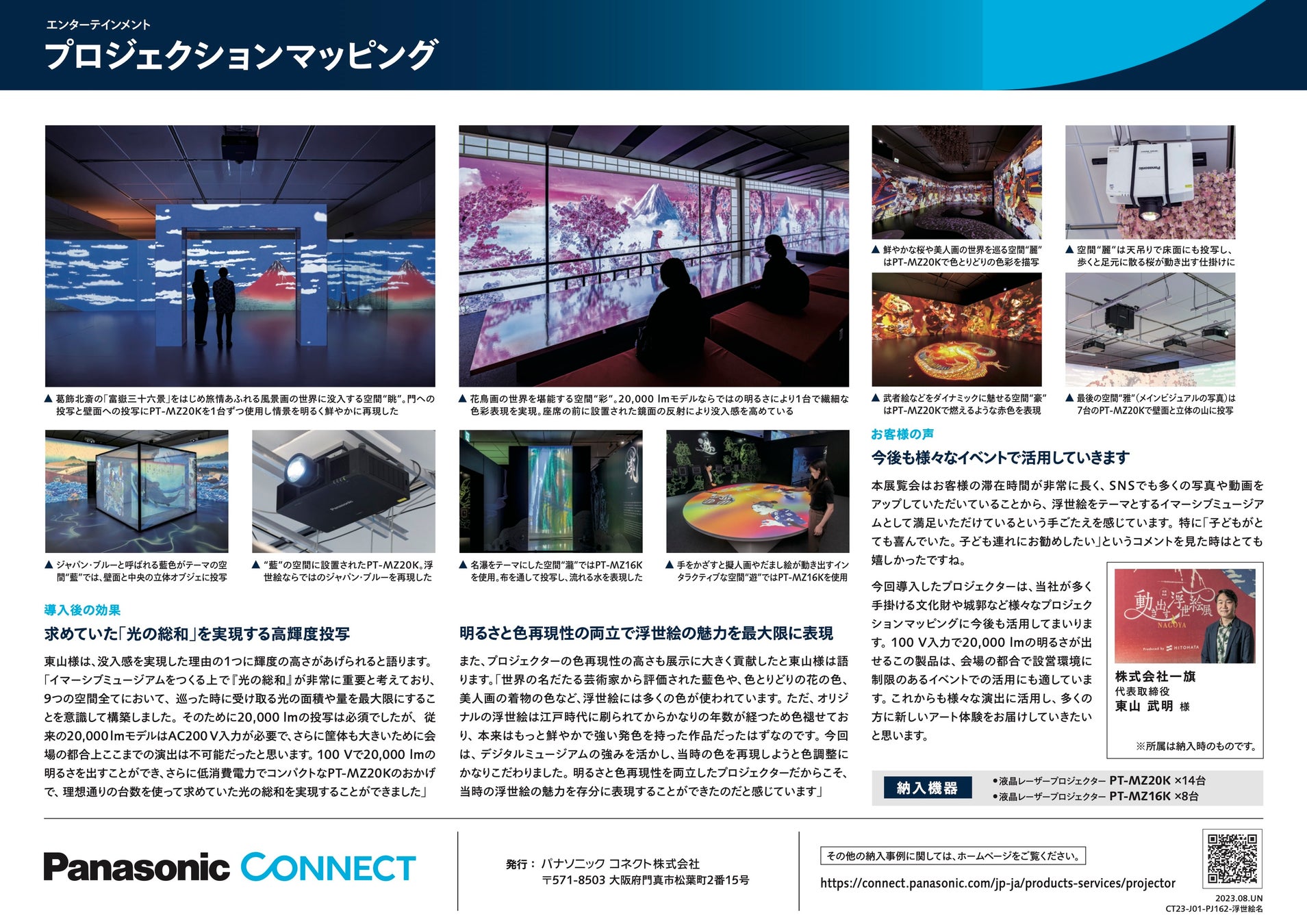 一旗プロデュース「空間体感!動き出す浮世絵展 NAGOYA」の事例がPanasonic Connect 業務用プロジェクター総合カタログの表紙に採用。