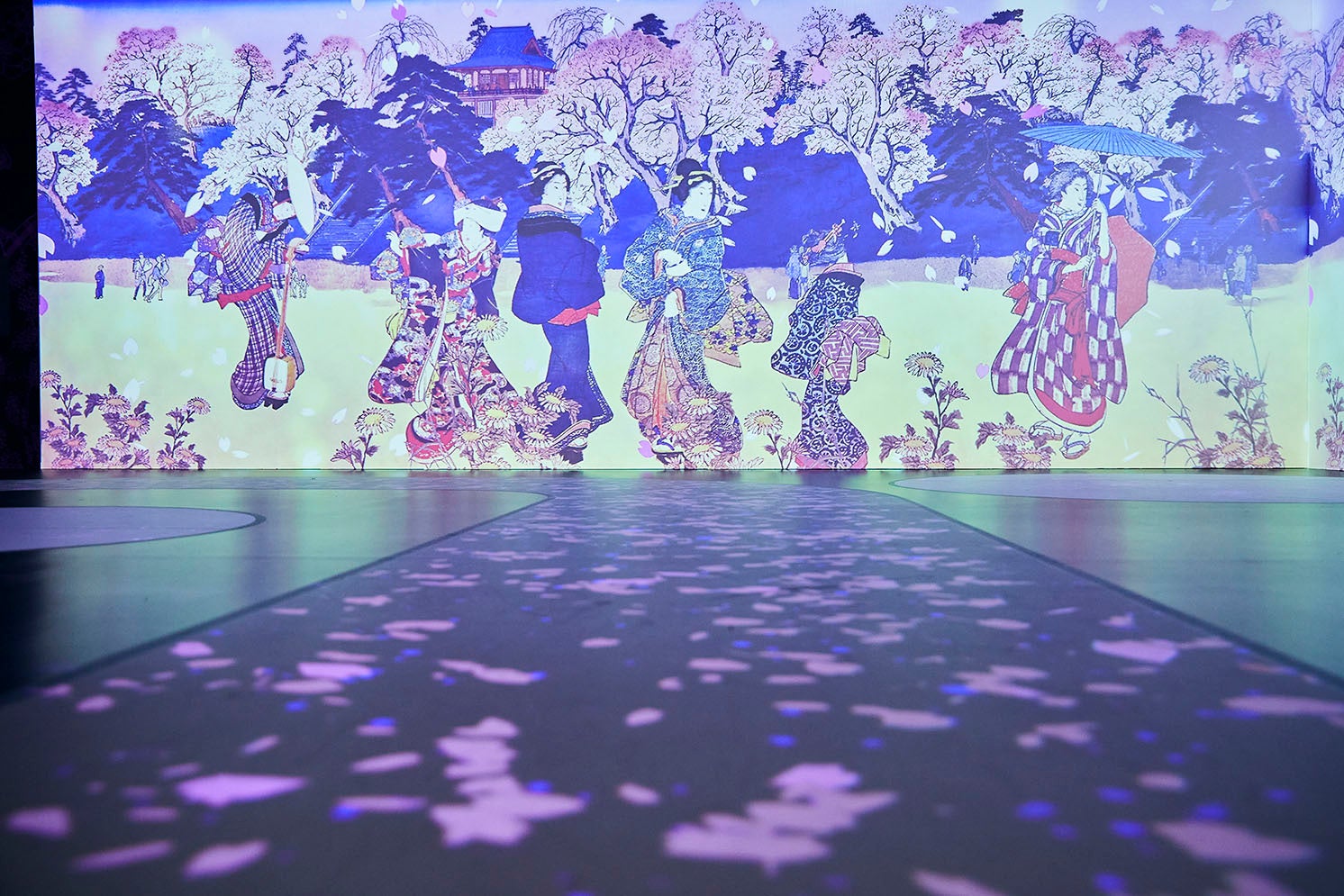 葛飾北斎、歌川国芳、歌川広重、喜多川歌麿、東洲斎写楽、歌川国貞など世界的な浮世絵師の作品 300 点以上をもとに、3DCGアニメーションやプロジェクションマッピングを駆使して大人から子どもまで楽しめるデジタルアート作品として描き、9つの立体映像空間で浮世絵の世界に没入できる体感型デジタルアートミュージアム。さらに本展ではデジタル展示に加え実際の浮世絵作品を展示し、浮世絵の歴史や江戸の文化、浮世絵師たちについてわかりやすく解説する。時代を超えて世界を魅了し続ける浮世絵の傑作の数々がダイナミックに躍動する期間限定のイマーシブ(没入型)展覧会として、約8万人の方にご来場いただきました。