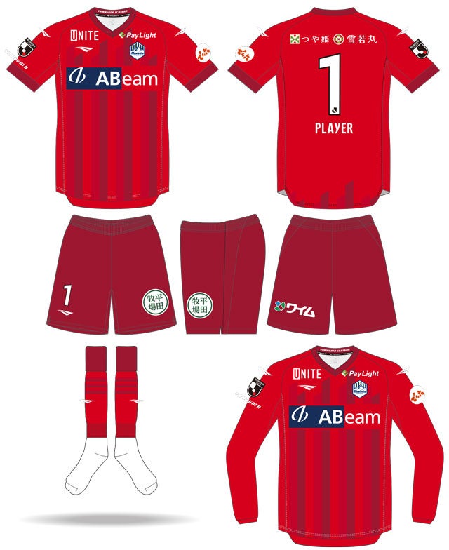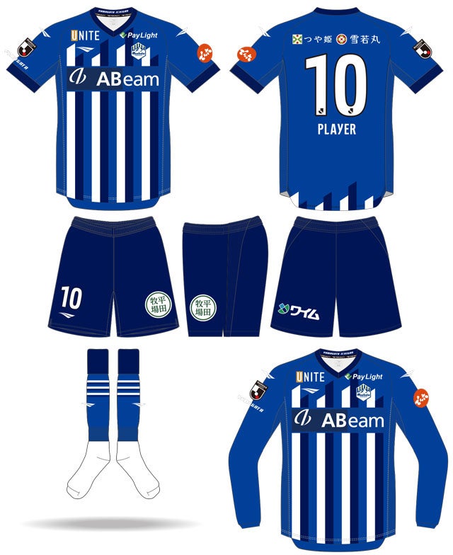 メインモチーフのストライプを白とネイビーで配置し、J1を目指すべく伸びていくチームの勢いを表現しています。