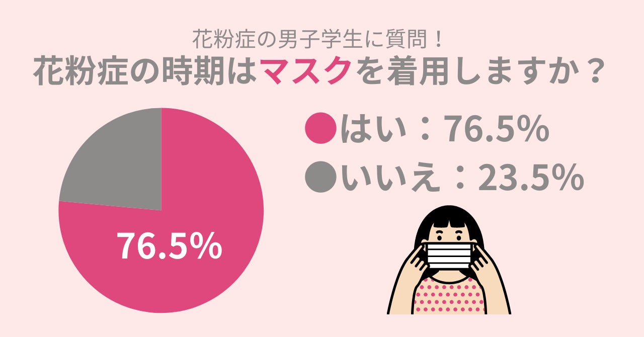 男子学生に調査!花粉症の方のうち、76.5%が花粉症で『マスク着用』