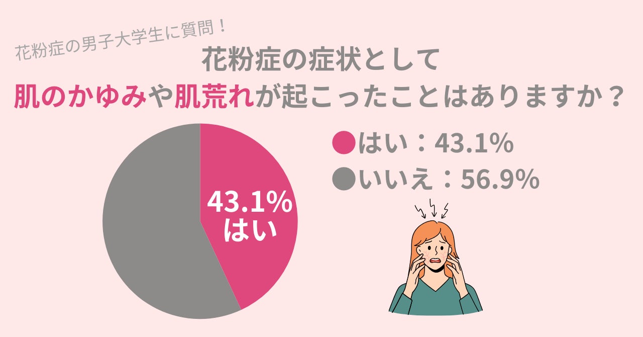 男子学生に調査!花粉症の方のうち、43.1%が花粉で肌に症状アリ