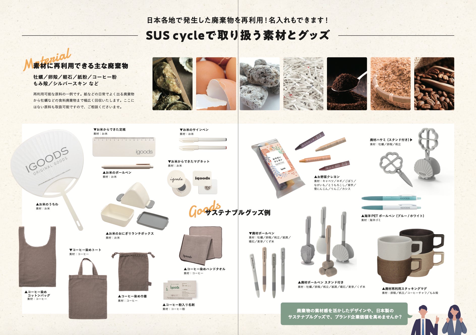 今回当社は、アップサイクルサービス「SUS cycle(サスサイクル)」と企業・ブランドの販売促進を叶える、名入れ可能な「SUSPRO OEM」を展示します。