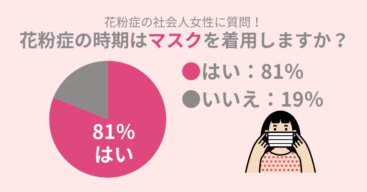 25〜35歳の女性に調査!花粉症でマスクを付けている人は81%
