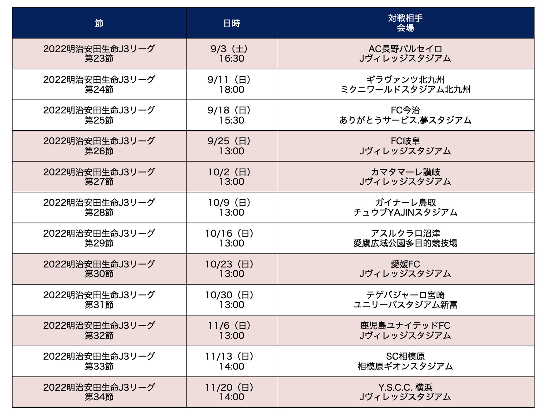 このたびいわきFCは、2022明治安田生命J3リーグにおける9月(第23節)以降の試合日程が決定しましたので、お知らせいたします。