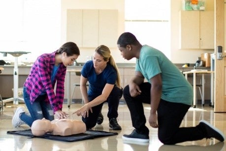 AED実機さながらのトレーナーでリアルな救命訓練を