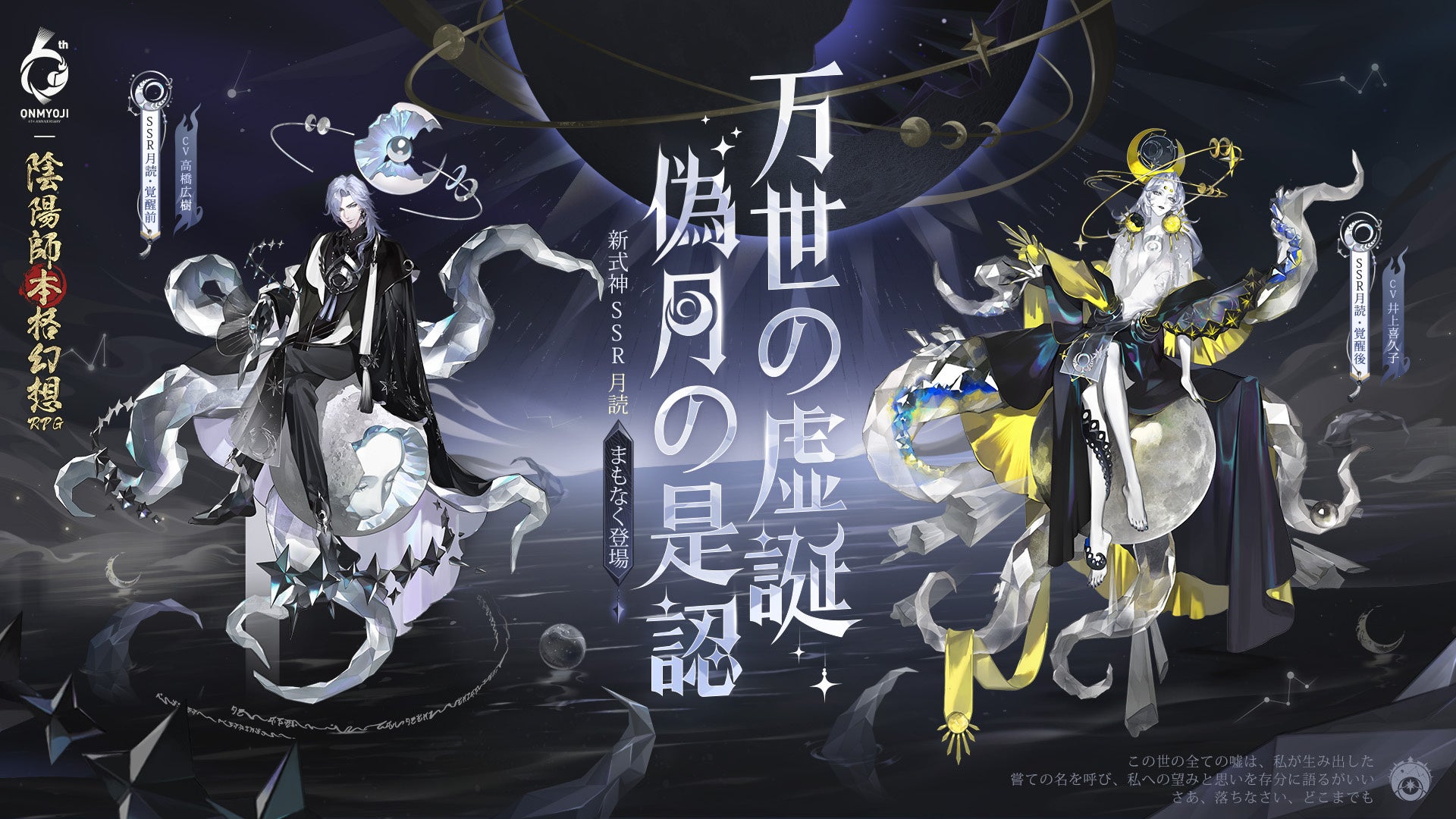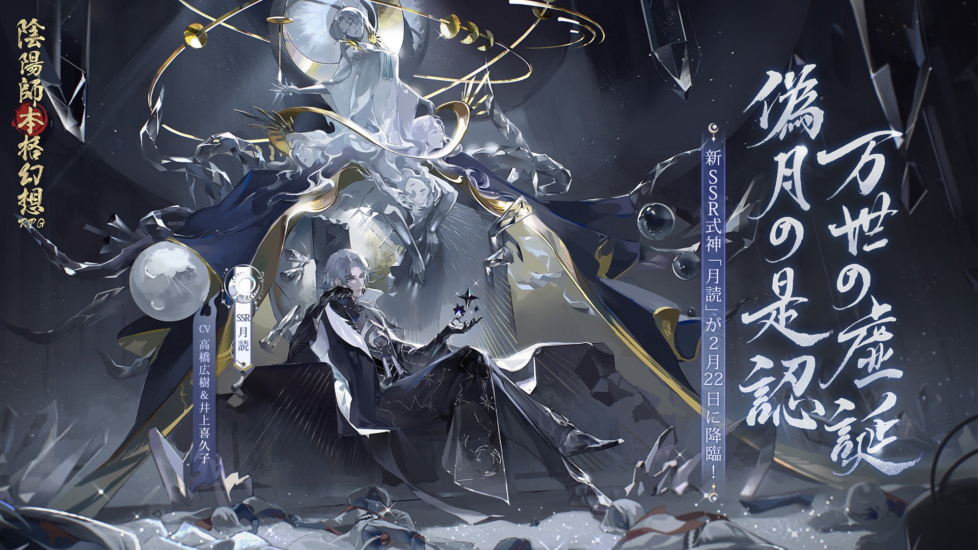 『陰陽師本格幻想RPG』新SSR式神月読 (CV:高橋広樹/井上喜久子 )が六周年の記念式神として2月22日(水)に平安京に降臨!