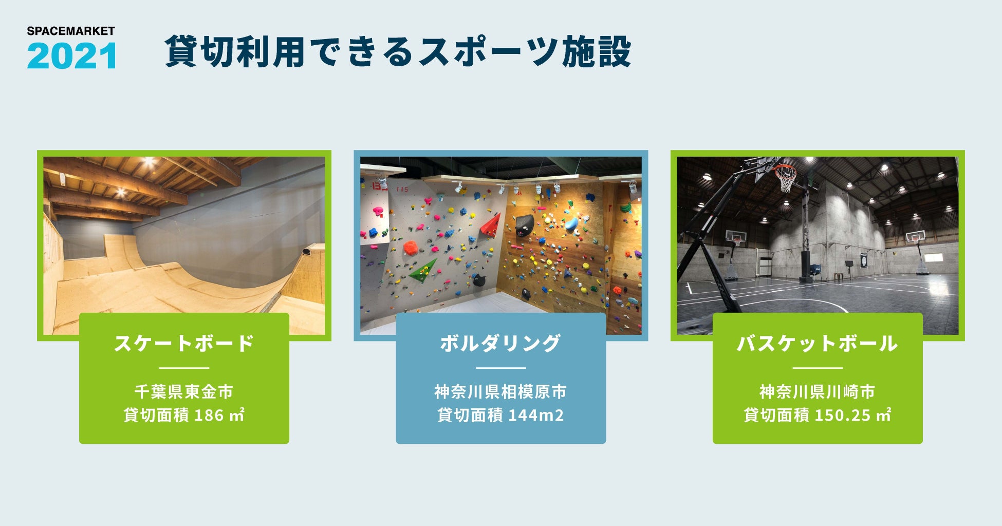 株式会社スペースマーケット(本社:東京都渋谷区、代表取締役社長:重松大輔、以下「スペースマーケット」)は、あらゆるスペースを貸し借りできるプラットフォーム「スペースマーケット」における2021年の利用動向をまとめた「スペースシェア・トレンド2021」を発表します。