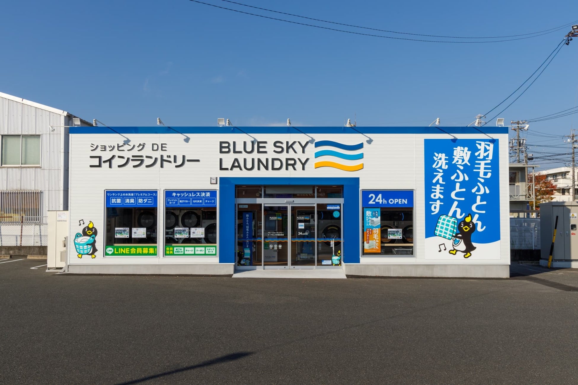 ブルースカイランドリーは家事の軽減や家族との時間を増やすため、コインランドリーを上手に利用したライフスタイルを提案しています。ブルースカイランドリーの特徴として、9:00~12:00までスタッフが常駐し店内の清掃を行い、常に清潔な店舗を保っております。また、サービス面・防犯面におきましても、専用のコールセンター、監視カメラを設置することにより、お客様に安心してご利用いただける店舗となります。