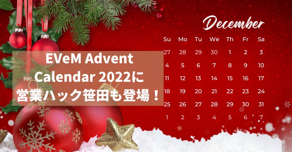 株式会社営業ハック代表取締役社長笹田裕嗣が、マネージャー育成事業を行う株式会社EVeM(本社:東京都新宿区、代表:長村禎庸)が企画する「EVeM Advent Calendar 2022」に参画しました。「EVeM Advent Calendar 2022」とは、総勢18名のベンチャー、スタートアップ企業においてマネジメントに関わる方々が、2022年12月1日からクリスマスまで1日ずつマネジメントをテーマに記事を執筆していくイベントです。12月23日に営業ハック代表笹田も記事の作成を担当いたしました。