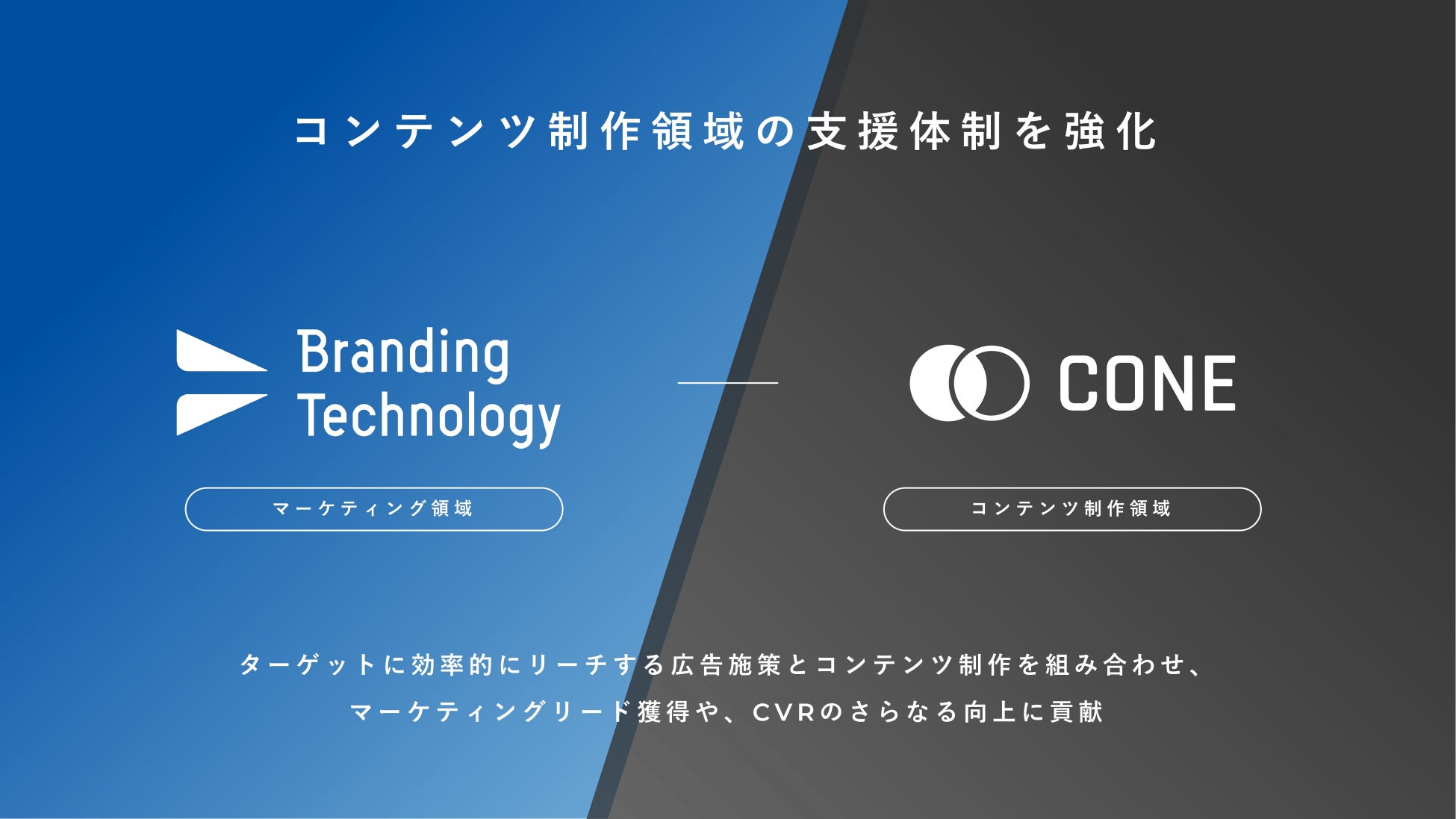 ブランディングテクノロジー、コンテンツ制作を行うCONE(コーン)と業務提携~広告、コンテンツ、SEO、各種制作を横断した高効率の実行支援を~