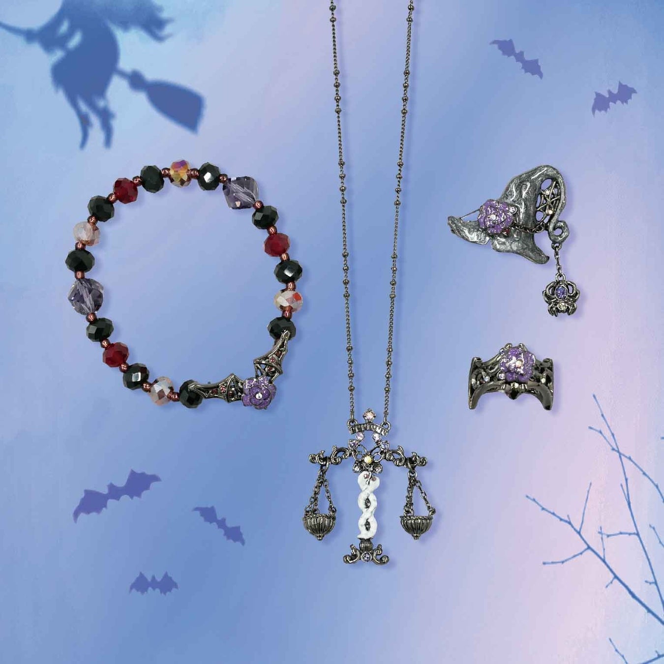 透かしで表現されたコウモリ、叡智のシンボルとさている魔女の帽子、天秤をモチーフにしたアイテムが登場。