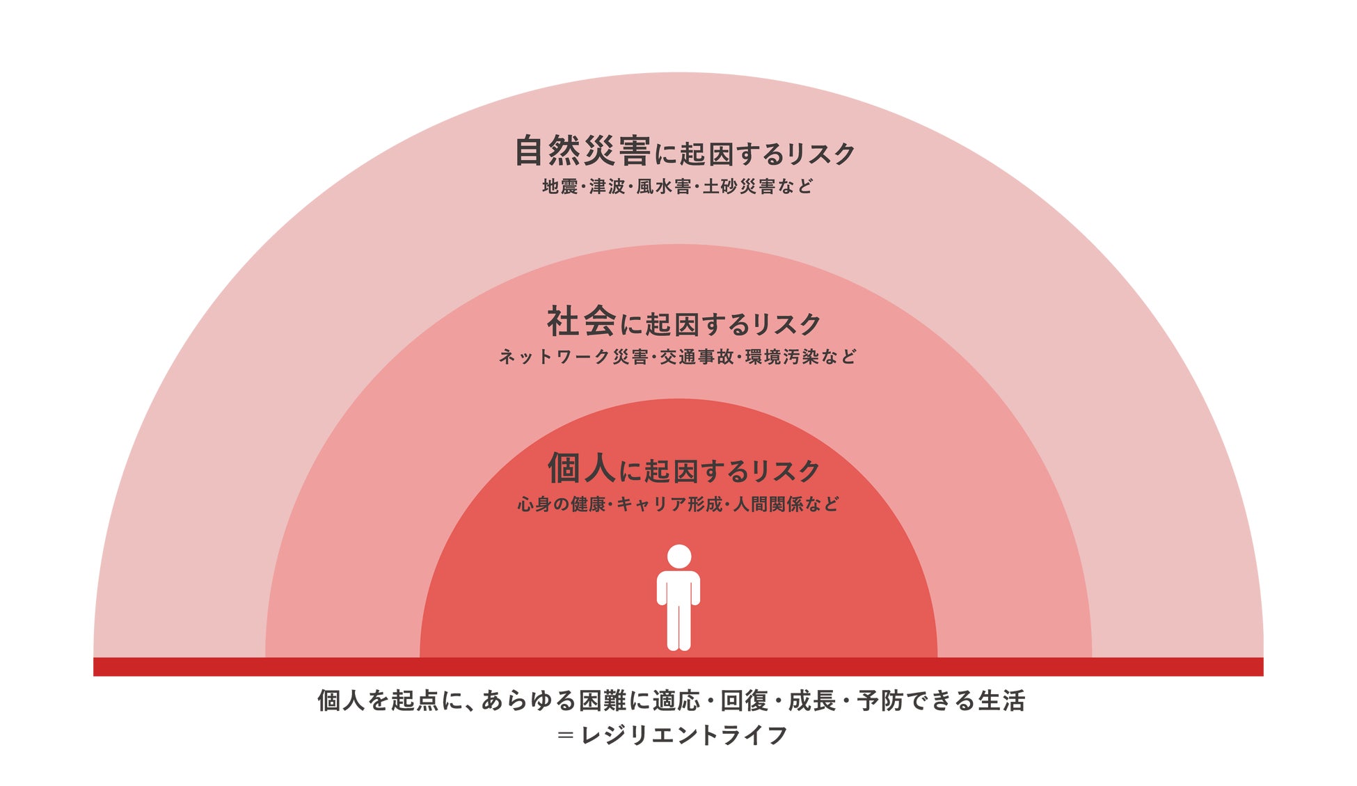 自然災害のリスクをはじめ、社会に起因するリスク、そして個人に起因するリスクに至るまで、あらゆるリスクが生み出す困難を乗り越えるための「レジリエンス」を高め、より豊かな生活の実現を目指す、新しいライフスタイルです。