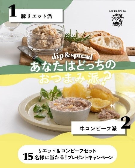 コメントをご投稿いただいた方から抽選で15名様に、buquéricoより「豚リエット」「牛コンビーフ」各1点、合計2点をセットにしてプレゼントします。