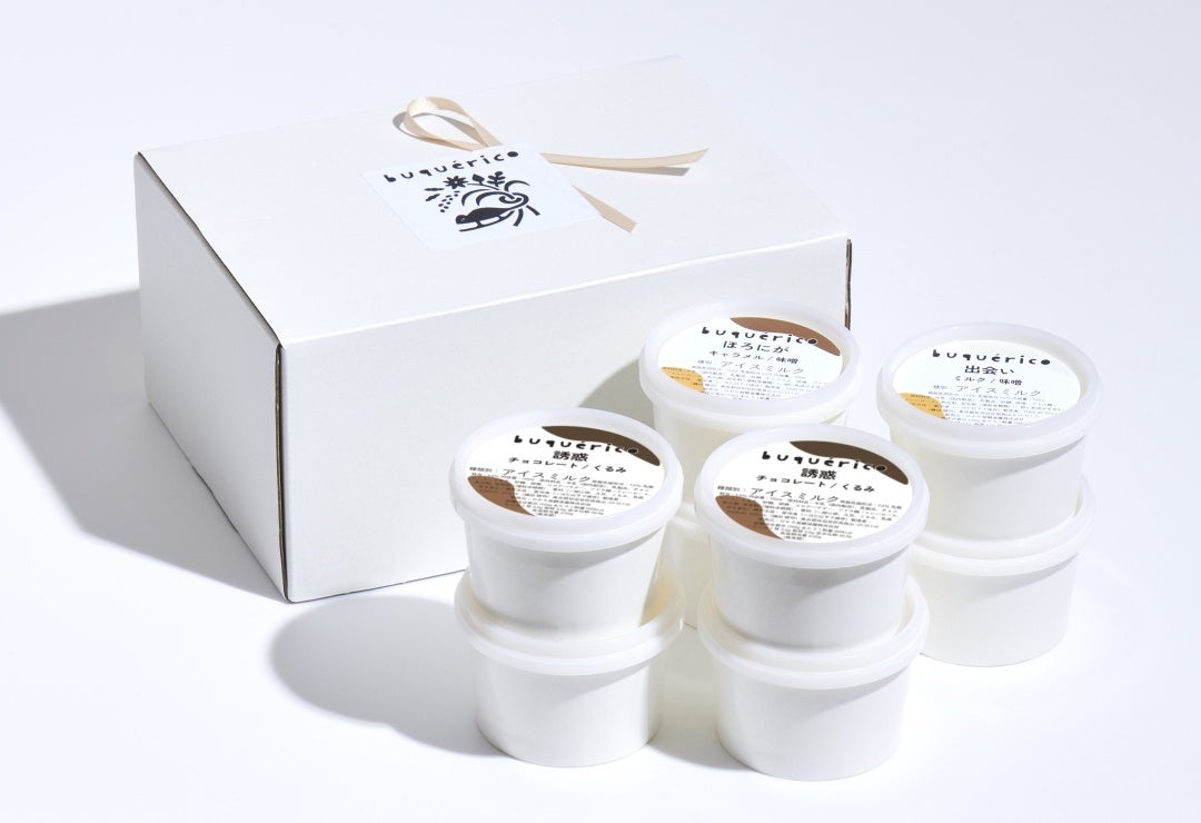 心に残る、誰かとの甘い思い出。その甘さにはさまざまな表情があります。それは「大人の、甘くない、ご褒美」としてお届けする『buquérico』のジェラートも同じ。各フレーバーには、それらの大切な思い出を表現した名前がついています。これまでに「ブケリコ 出会い ミルク/味噌󠄀」 「ブケリコ ほろにが キャラメル/味噌󠄀」「ブケリコ 初恋 ヨーグルト/あんず」 「ブケリコ 片思い 甘酒/バナナ」の4種を展開しています。