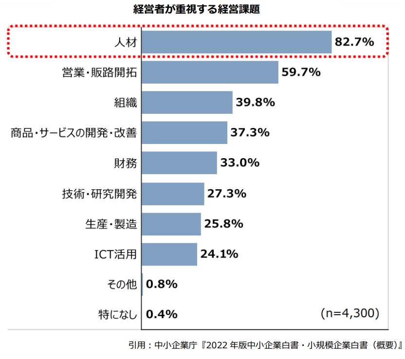 実際に、上の図から『経営者が重視する経営課題』の上位に「人材」があることが分かります。