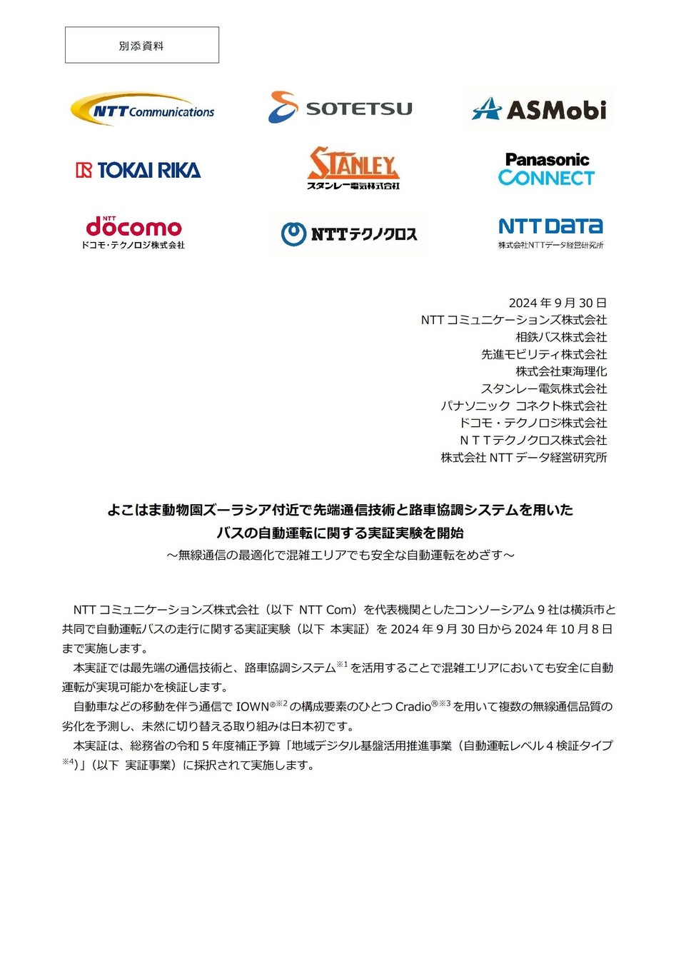 株式会社東海理化 (本社:愛知県丹羽郡大口町 代表取締役社長:二之夕 裕美)は、総務省の令和6年度 地域デジタル基盤活用推進事業(自動運転レベル4検証タイプ)に採択された、横浜市立よこはま動物園「ズーラシア」で実施する自動運転サービスの実証実験に参画します。
