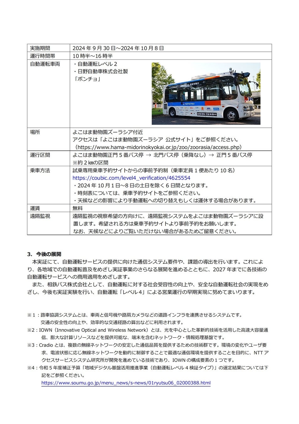 (実証実験の概要は、別添資料『先端通信技術を用いたよこはま動物園での自動運転サービス実証実験を開始』をご参照ください。)