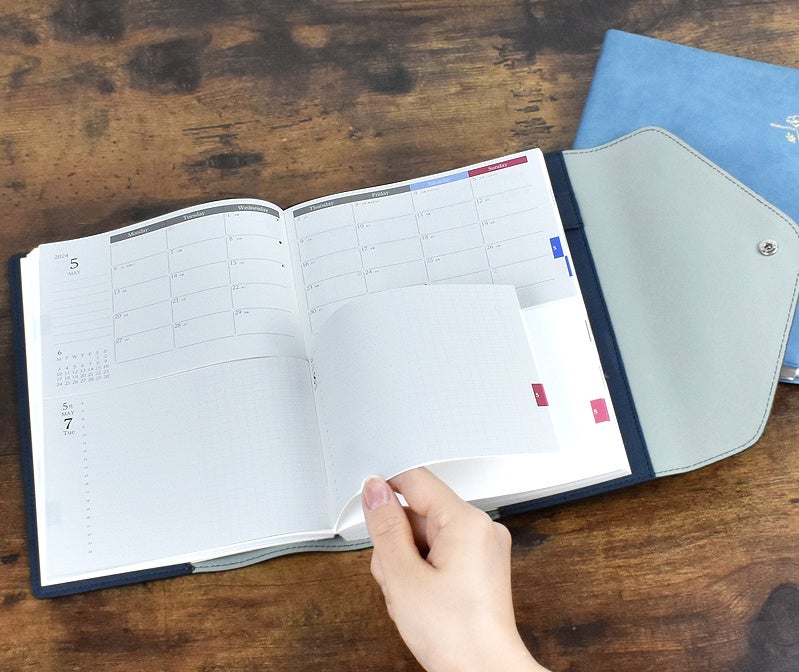 2025年1月始まりのセパレートダイアリーは、新作手帳カバー1種類を追加し、2タイプ(週間・1日1ページ)、2サイズ(A5/B6)、手帳カバー5種類24カラーバリエーションでセット販売とリフィル単品販売を行います。