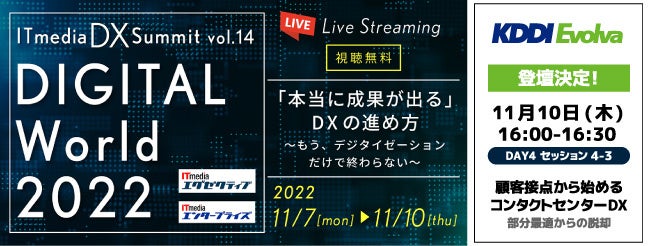 11月10日『ITmedia DX Summit Vol.14/ DIGITAL World 2022』登壇、顧客接点から始めるコンタクトセンターDX ~部分最適からの脱却