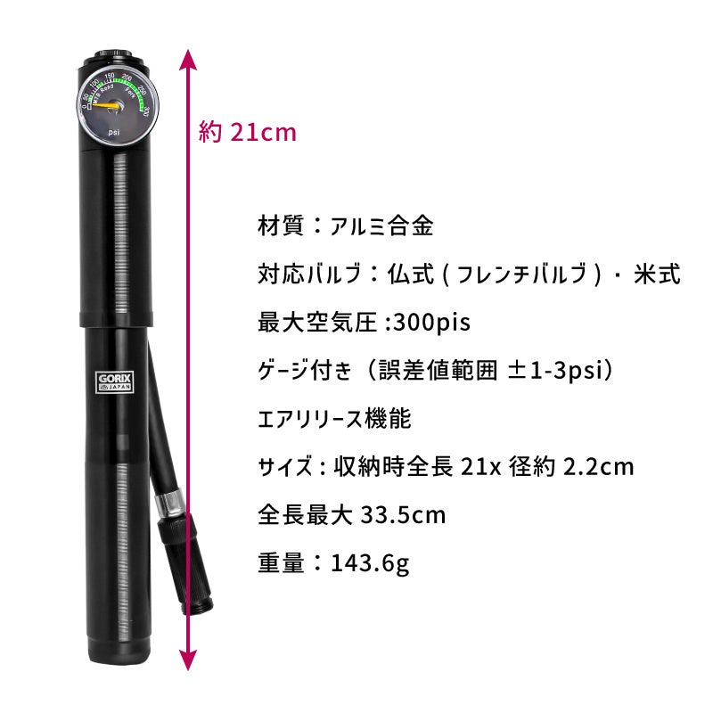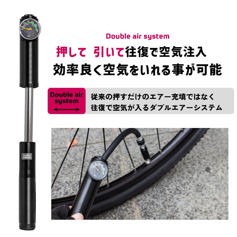 商品名:GORIX ゲージ付き携帯空気入れ (GX-MPE68)