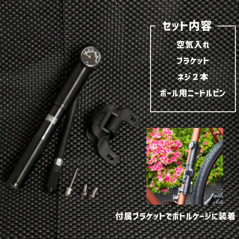 商品内容 自転車用携帯空気入れ、ブラケット、ネジ2本、ボールニードル